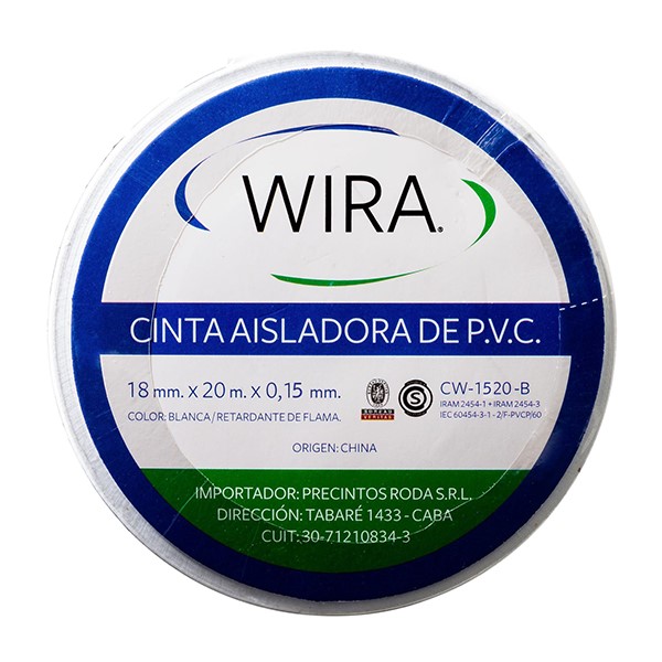 Categorías: CINTAS ADHESIVAS, CINTAS AISLADORAS PVC, FIJACIONMarca: WIRA